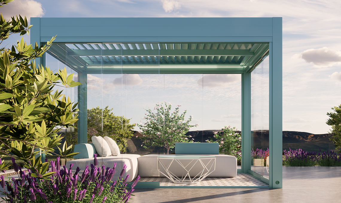 La pergola sarà disponibile anche in una versione limited edition personalizzabile con i colori AKZONOBEL che, grazie alla certificazione Qualicoat Class 2, garantisce un'eccezionale superdurabilità con massimi livelli di ritenzione della brillantezza, stabilità del colore e resistenza ai raggi UV.
