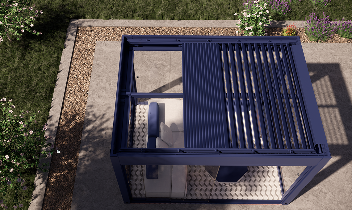 Grazie all’innovativa componente tecnologica che permette la movimentazione delle lame frangisole, la pergola garantisce il massimo grado di benessere in ogni momento della giornata. Un duplice sistema di movimentazione permette di gestire separatamente l’orientamento e l’apertura o la chiusura delle lame.