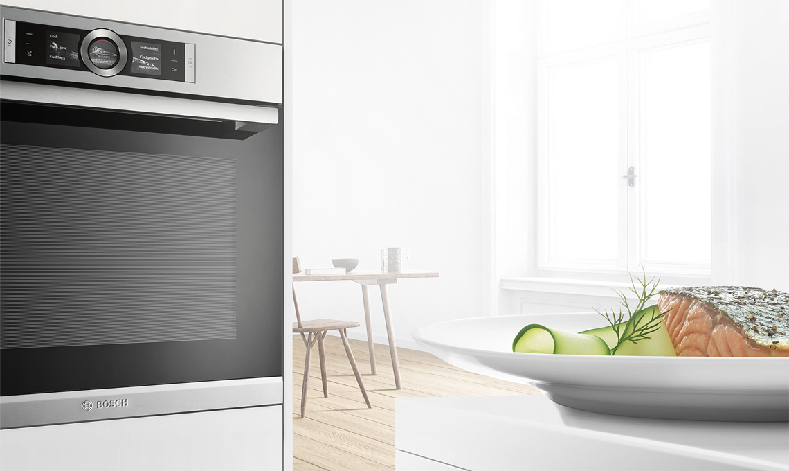 Oltre a queste funzioni hai a disposizione un’assistente alla cottura per quando hai dubbi o incertezze su modalità e temperature da impostare: i forni Bosch sono dotati della funzione DishAssist che imposta automaticamente la temperatura, il tipo di riscaldamento e la durata della cottura semplicemente selezionando la pietanza da cuocere. Non solo tecnologia ma anche design: il pannello comandi diventa un anello rotante che insieme al display touchscreen TFT ad alta risoluzione permette di selezionare in modo semplice e intuitivo l’impostazione desiderata.