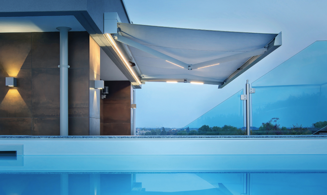 Per chi ama gli spazi ampi e sogna di vivere il terrazzo come un vero salotto all’aperto, c’è la tenda R95 Stone. Robusta, preassemblata, senza giunzioni visibili, è il modello top di gamma della collezione. Grazie ai bracci a pantografo con LED integrati e alla regolazione micrometrica dell’inclinazione, trasforma l’ambiente esterno in uno spazio scenografico, ideale per cene, relax o momenti conviviali. Con dimensioni fino a 800×425 cm e 62 colori tra cui scegliere, la R95 Stone è una dichiarazione di stile e funzionalità che trasforma ogni spazio esterno in un luogo raffinato e funzionale.