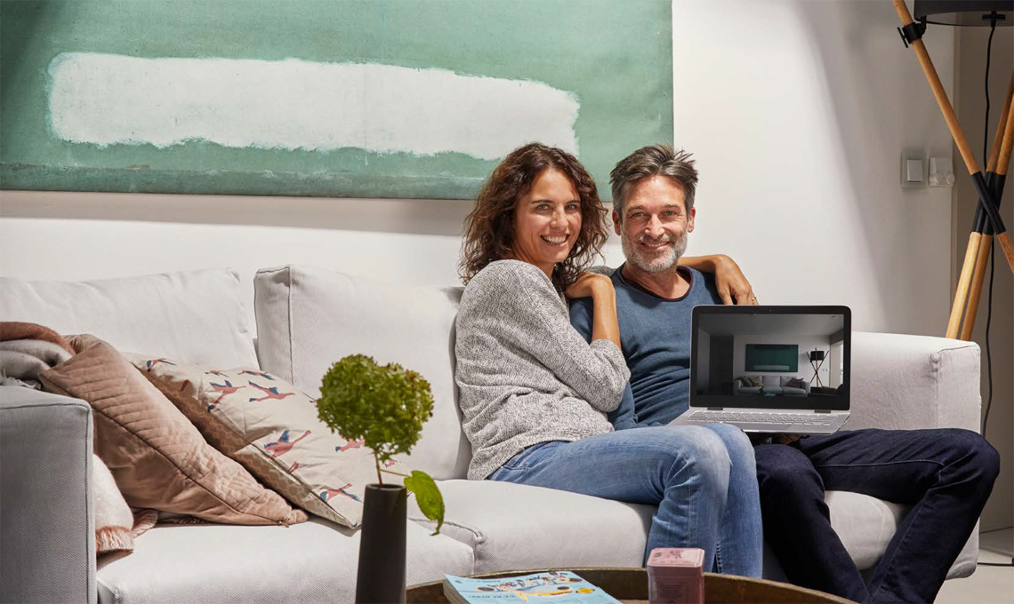 La finestra per tetti piani, apribile o fissa, inonda la casa di luce zenitale: guarda che differenza tra prima (nello schermo del computer sulle ginocchia della coppia) e dopo!