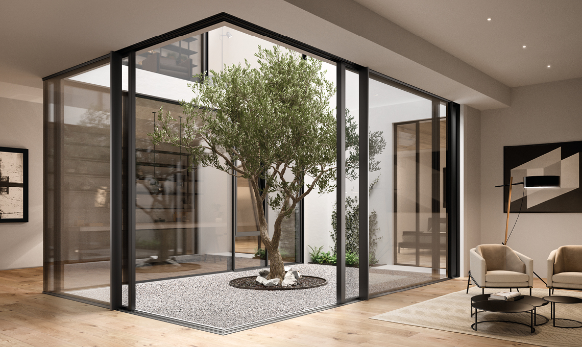 I profili particolarmente snelli e la sezione centrale in vista di soli 31 mm permettono di massimizzare la quantità di superficie vetrata, aumentano la luce naturale negli ambienti. In questo modo, aumenta il benessere psicofisico e il risparmio energetico, dovuto a un isolamento termico eccellente.