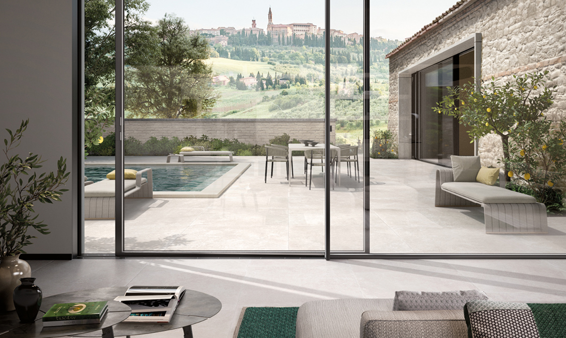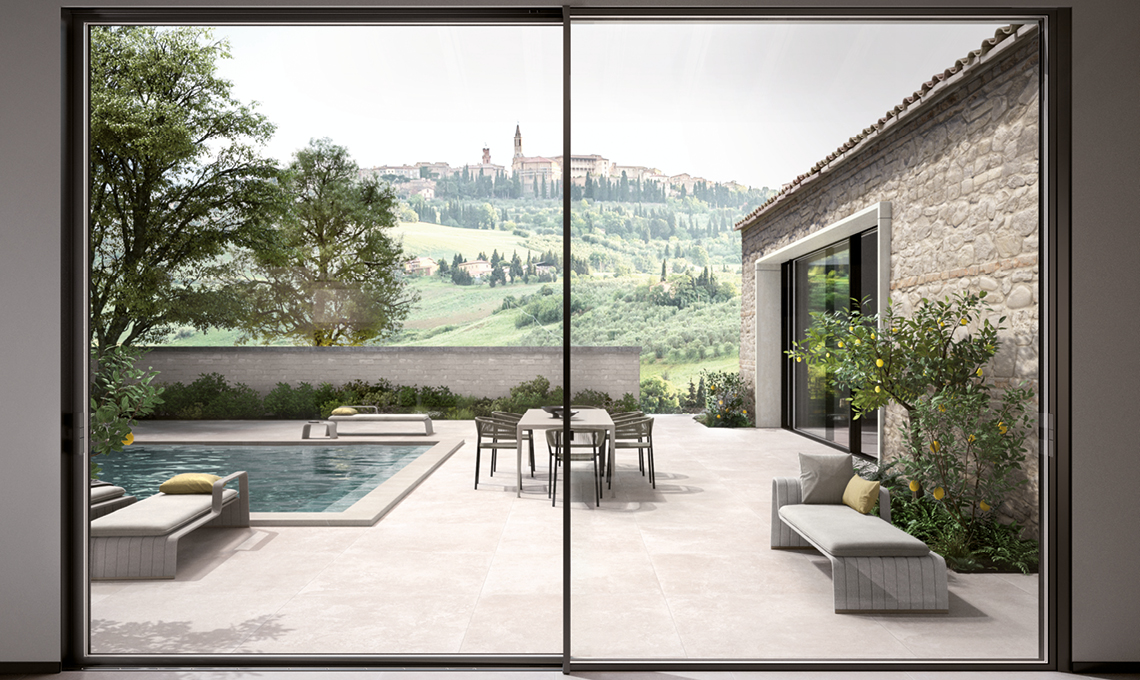 Gli scorrevoli sono dotati di soglia piana '0 Level', quindi a filo pavimento, che garantisce facilità di accesso anche ad anziani e bambini. Un'ulteriore caratteristica che amplifica il dialogo tra indoor e outdoor, un'apertura verso la totale libertà degli spazi.