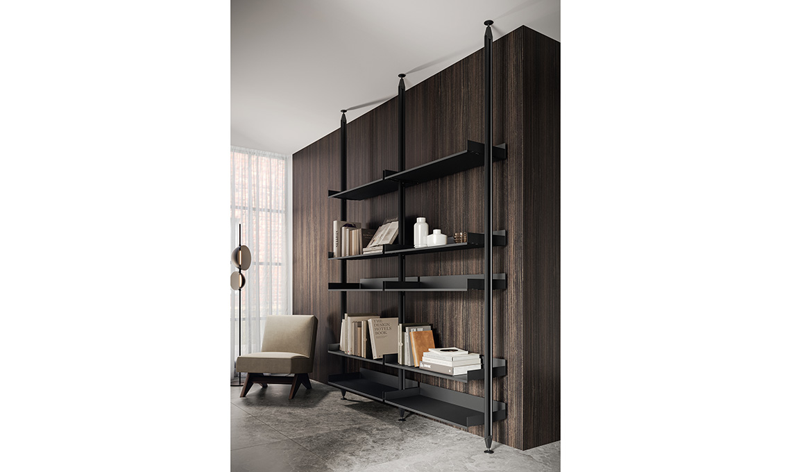 In tutte le soluzioni, soprattutto quelle aperte sul living, la libreria Free di Arredo3 può diventare lo snodo tra i vari ambienti. Può essere installata cielo-terra a soffitto o a parete in modo versatile grazie alla sua ampia libertà compositiva.