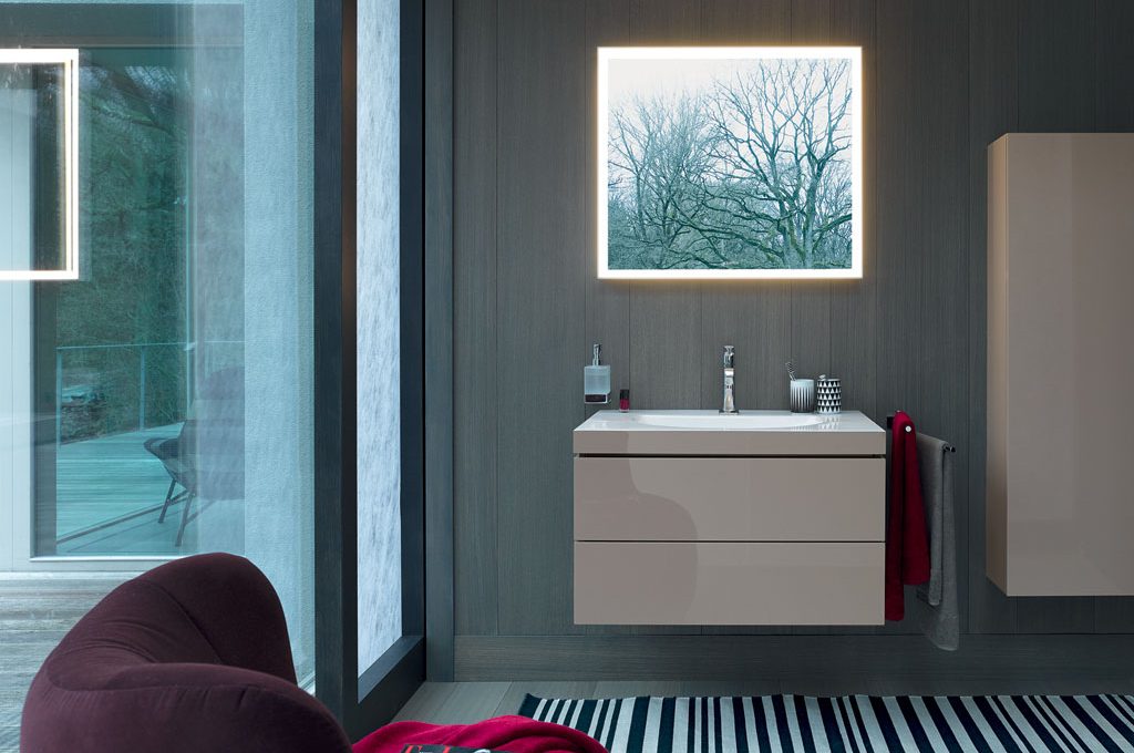Grazie a questa tecnologia di estrema precisione, ceramica e mobile si fondono in un’unica unità. Lo spessore del lavabo risulta quindi invisibile e si riduce al mero spigolo che crea una sensazione insolita al tatto poiché passa dal superficie liscia e fredda della ceramica a quella naturale del legno.