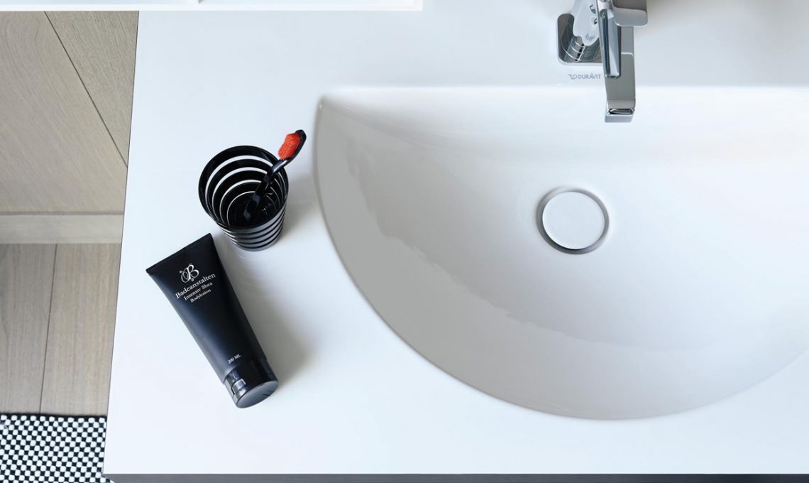 Nella nuova versione “c-bonded”, come Duravit definisce questa nuova tecnologia, il lavabo consolle viene unito perfettamente alla base sottolavabo, senza fughe visibili.