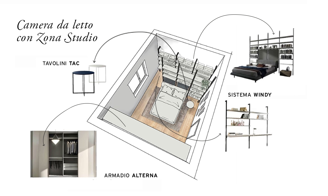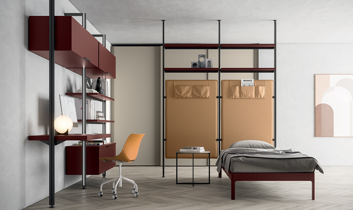 Come la zona giorno si fa sempre più multifunzionale, anche la zona notte si presta a una partizione organizzata.