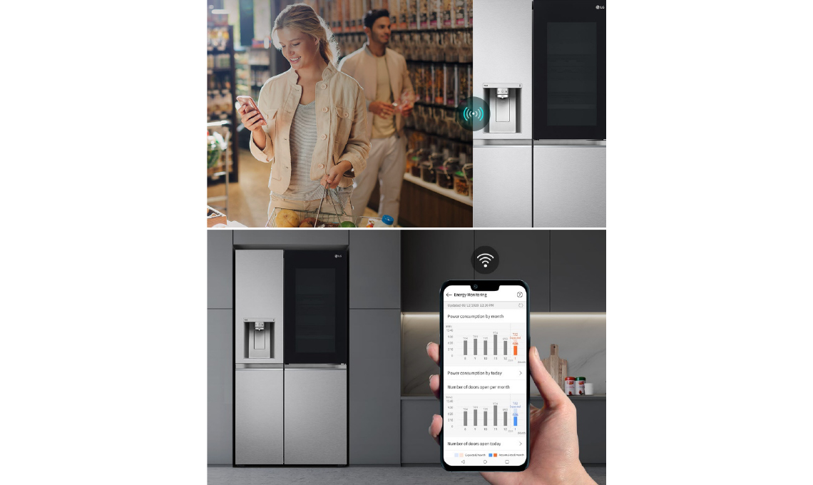 I nuovi frigoriferi side-by-side di LG possono essere gestiti da remoto grazie all’app LG ThinQ, che consente di interagire con l'assistente vocale e monitorare e il frigorifero, controllare i consumi energetici ed effettuare la diagnosi del dispositivo.