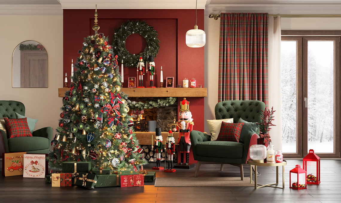 I grandi abeti, che hanno fatto parte dei ricordi di molti di noi, sono riccamente decorati con addobbi di colore rosso bordeaux, verde, crema e oro: una combinazione cromatica perfetta per riflettere lo spirito natalizio. Sull’albero non possono mancare personaggi come gli schiaccianoci un simbolo natalizio di un tempo passato o di una nuova vita che allarga la famiglia. Oltre alle catene luminose, le candele e le lampade in vetro, sono un valido aiuto per creare atmosfera e diffondere profumi avvolgenti nell’ambiente.