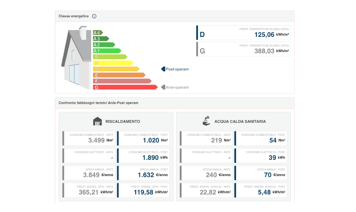 Ho subito visualizzato una stima della differenza tra i consumi attuali e quelli che avrò dopo l’intervento in modo da poter fare un confronto realistico. Ora posso farmi inviare il report completo e chiedere anche un preventivo.
