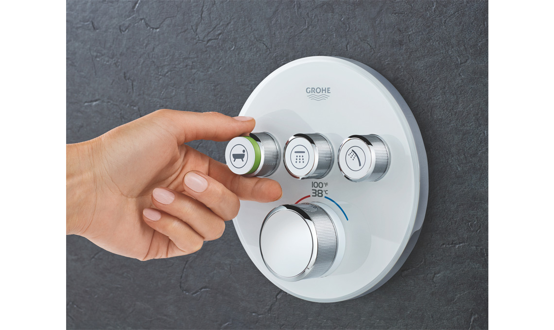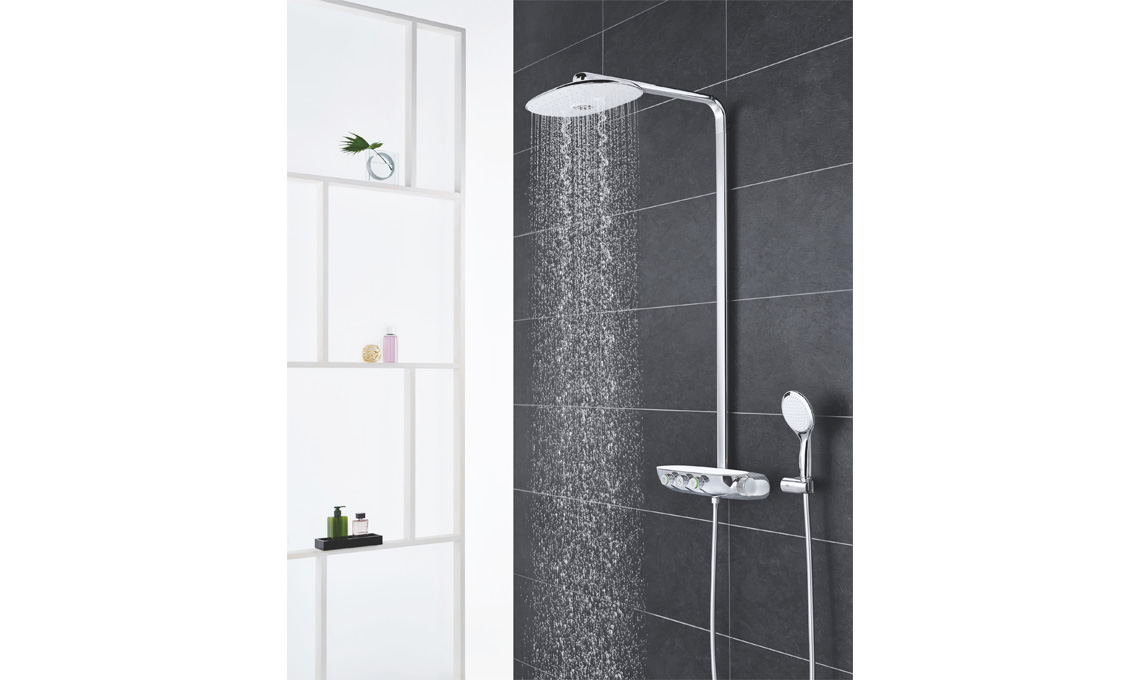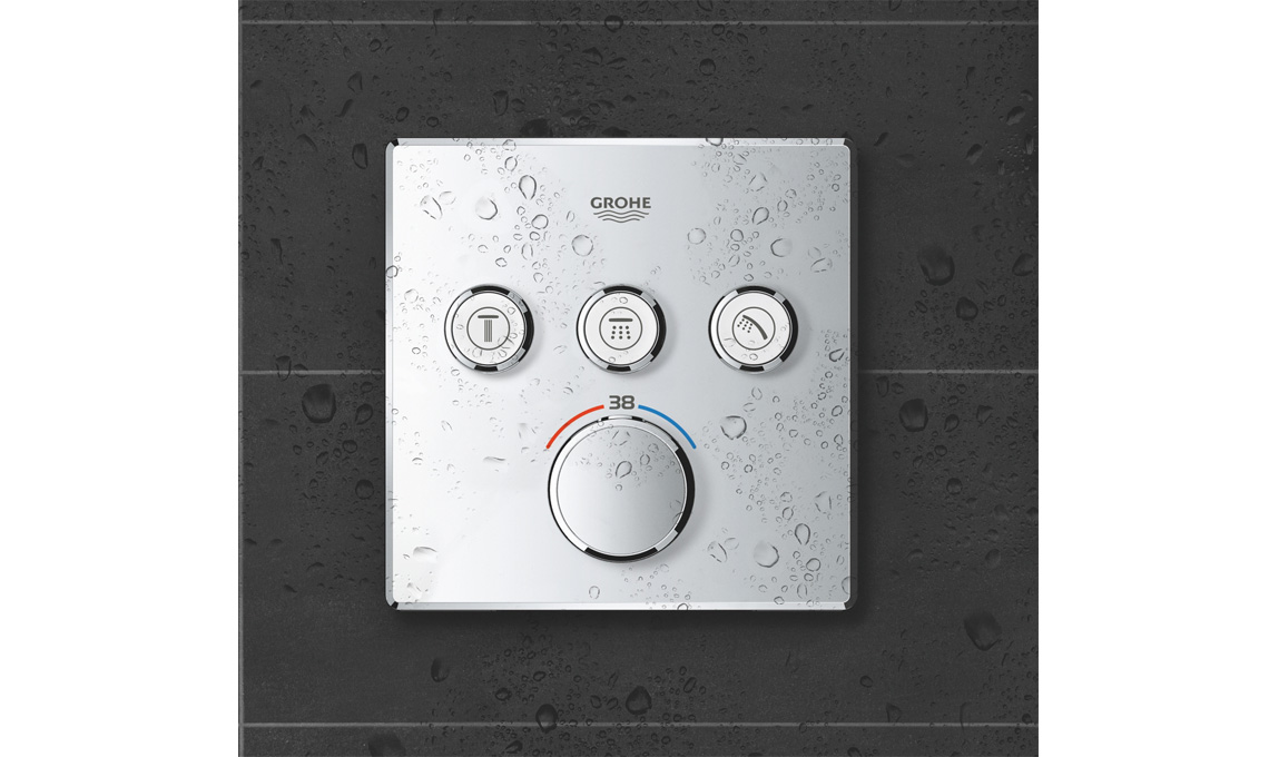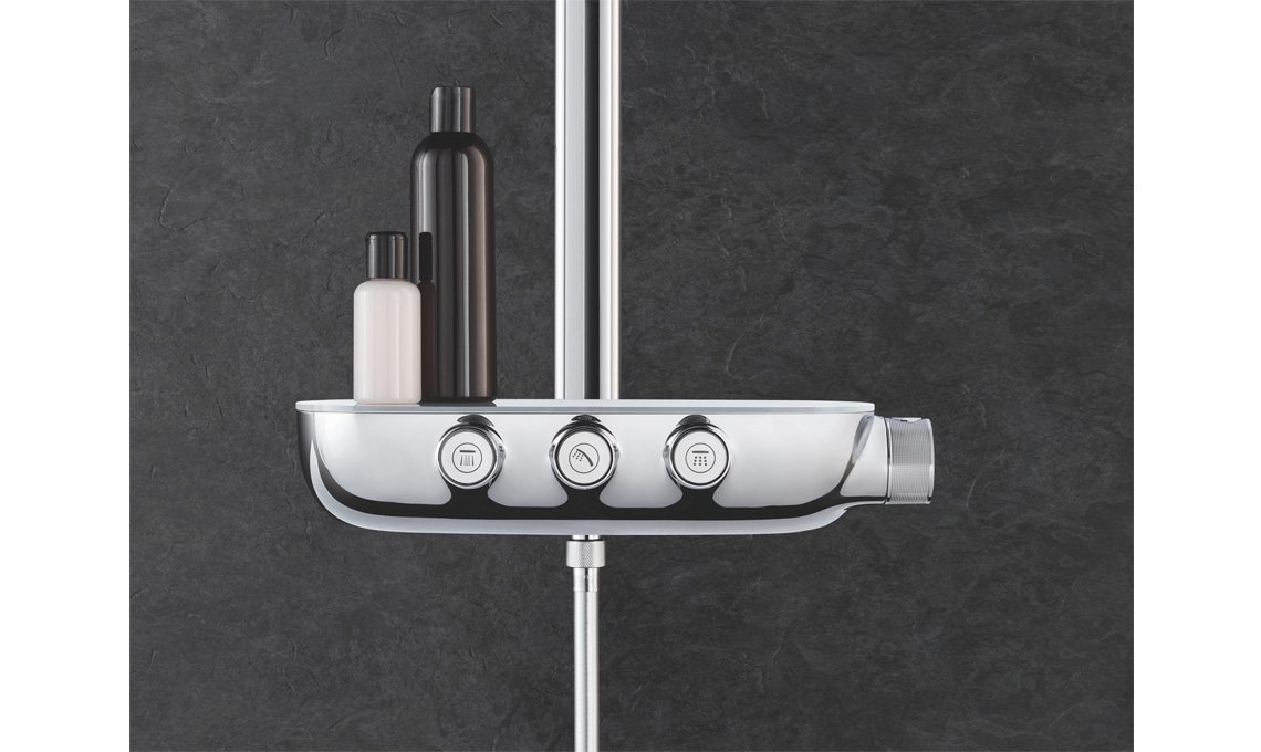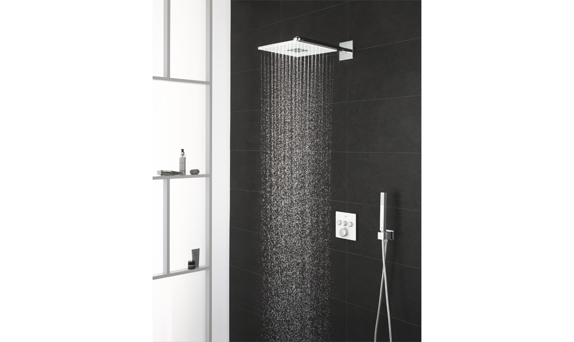 Anche le soluzioni tutto in uno – i sistemi doccia “a vista”, che comprendono colonna, soffione, manopola doccia e miscelatore – possono essere disponibili con l'esclusiva tecnologia SmartControl, e per un comfort ancora maggiore puoi optare per gli innovativi miscelatori termostatici Grohtherm dotati di tecnologia Grohe TurboStat, che mantiene costante la temperatura dell’acqua per tutta la durata della doccia, Grohe CoolTouch che evita il rischio di scottature grazie a un isolamento termico, e Grohe EcoJoy per il massimo del risparmio idrico.