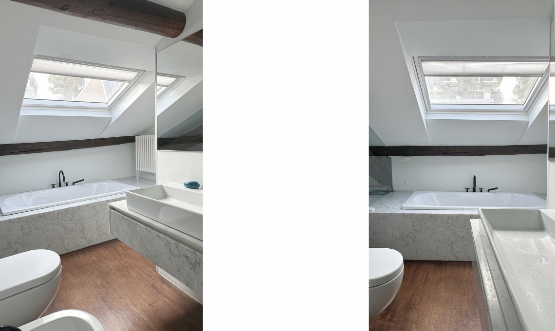 Le finestre per tetti Velux hanno regalato alla famiglia di Sergio anche panorami inaspettati… perfino dalla vasca da bagno: privacy salva, più vasca con vista!