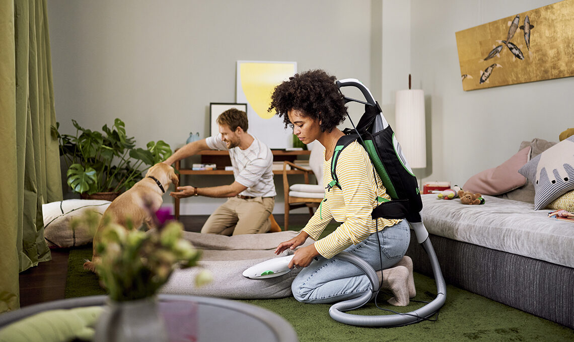 La spazzola elettrica per imbottiti Folletto PB440 S in combinazione con il sistema di pulizia Folletto VK220 S è la soluzione ideale per una pulizia accurata di divani, poltrone, materassi e anche degli interni dell'auto liberandoli da polvere, batteri, acari e peli di animali.