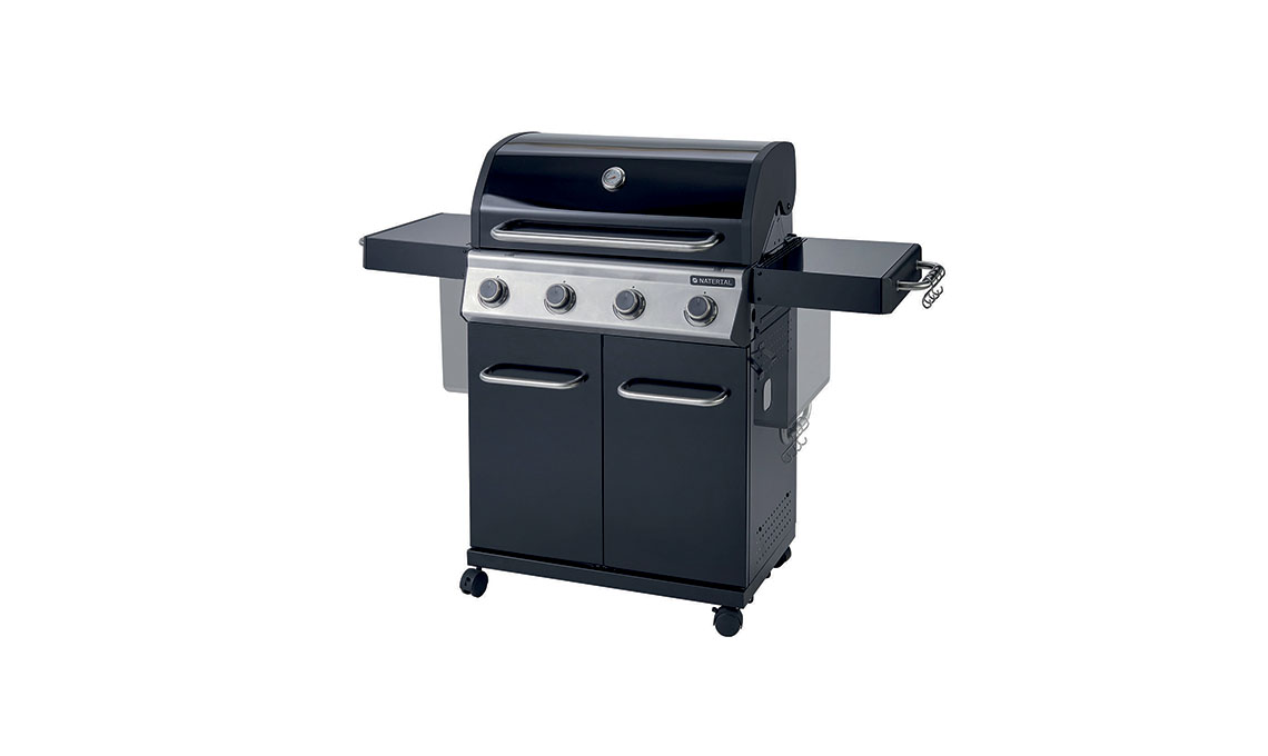 Kenton 4 bruciatori. Area di cottura: cm 72xP35x116h. 4 bruciatori in acciaio inox, 14 kW. Termometro integrato nel coperchio € 329.
