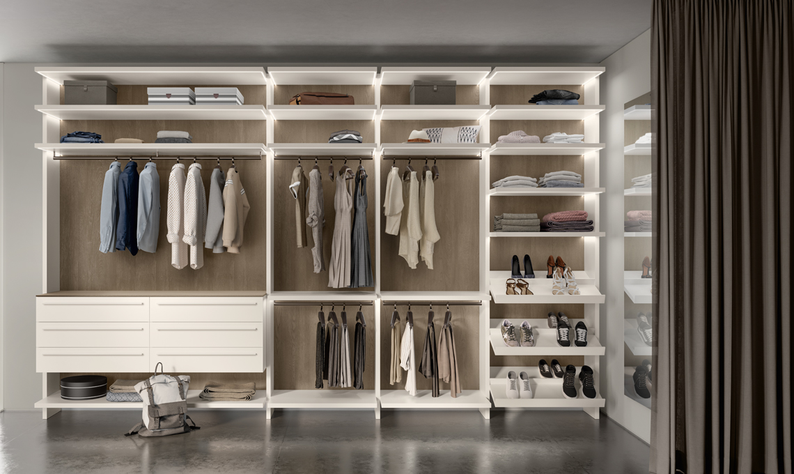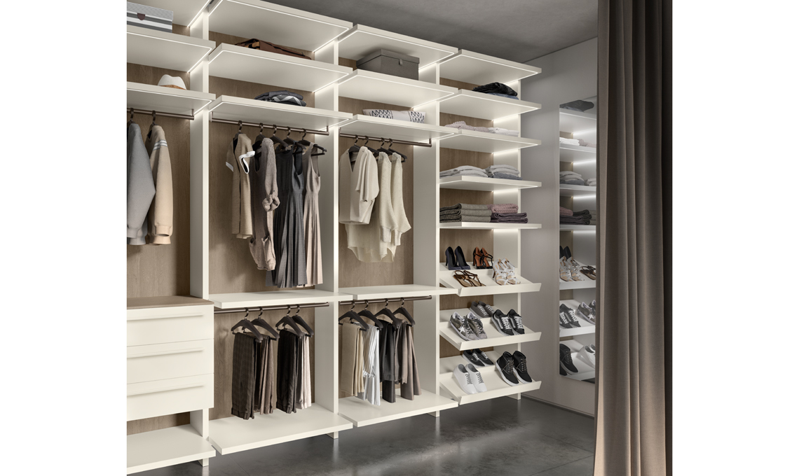 È possibile scegliere tra soluzioni lineari, ad angolo, con moduli a vista oppure chiusi con ante o, anche, soluzioni free-standing, pensate per separare gli ambienti.