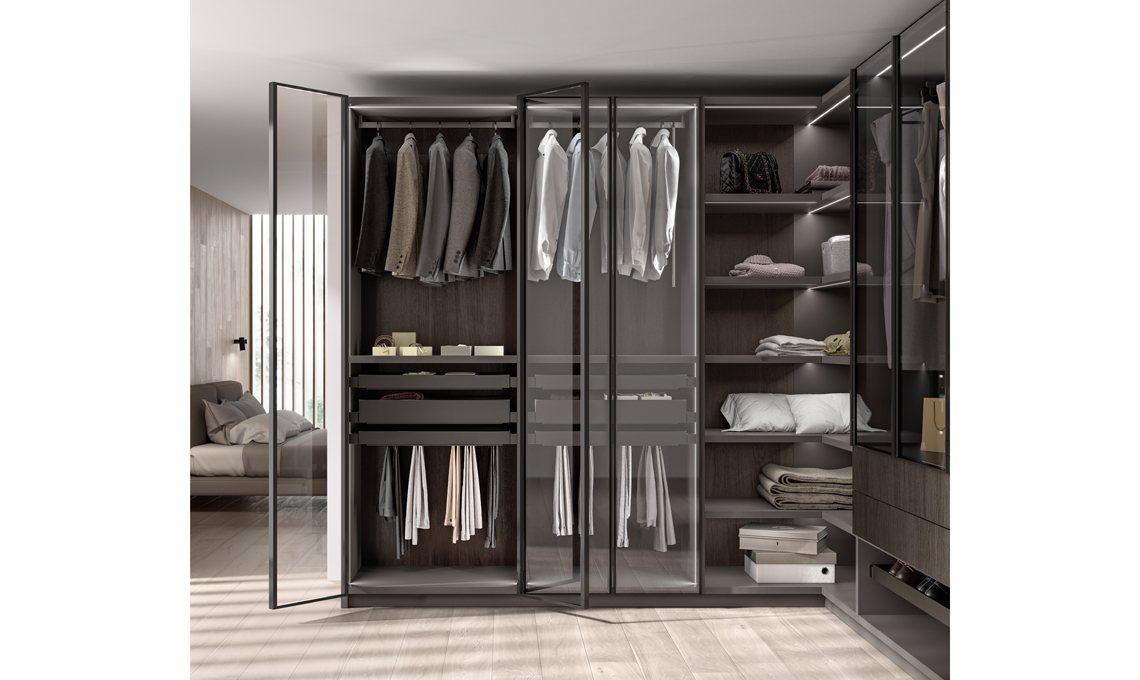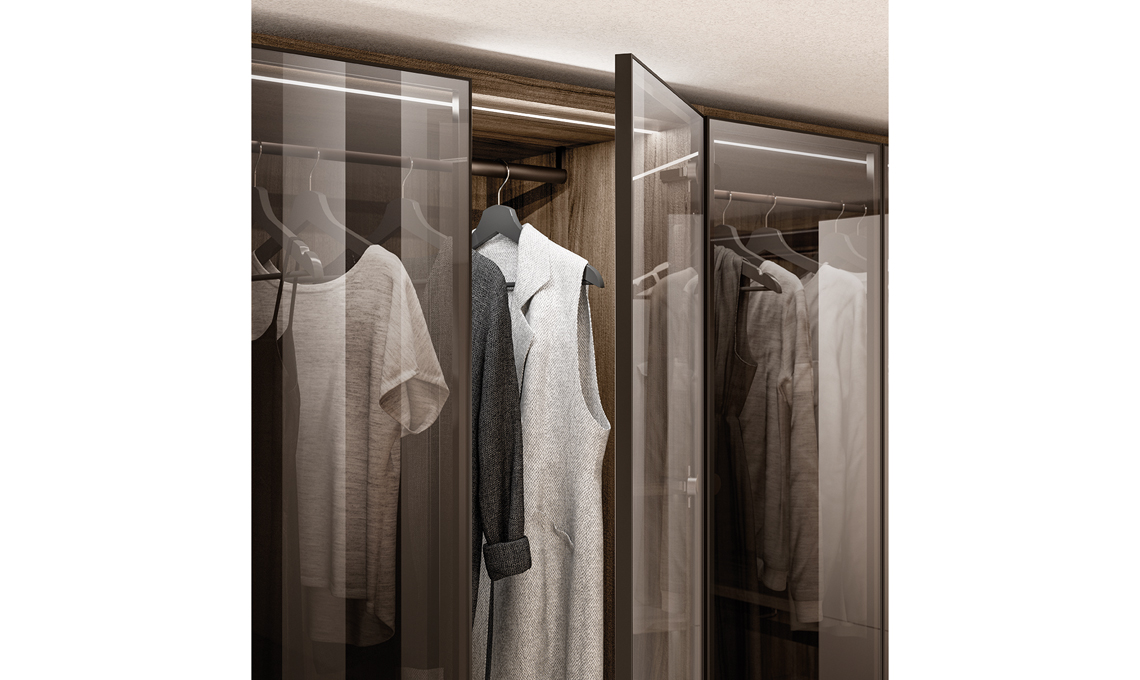 Walk-in Fluida è infatti un sistema molto versatile che consente di personalizzare la propria cabina inserendola anche là dove le dimensioni sono ridotte: ad esempio un angolo della camera da letto, una stanza di passaggio, un ambiente lungo e stretto.