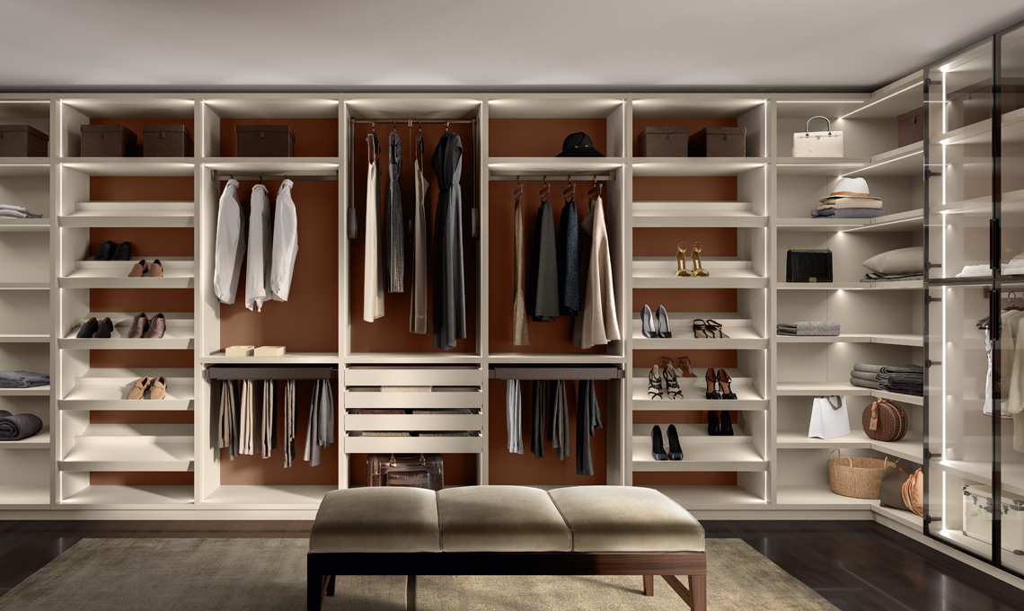 Con il sistema d'arredo Walk-in Fluida ideato da Scavolini, ho creato tre guardaroba perfetti per diverse esigenze. Il tutto in uno spazio di 300 cm x 150 cm.