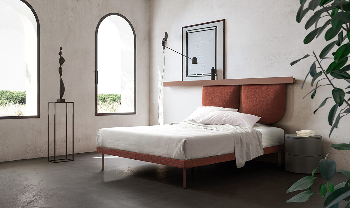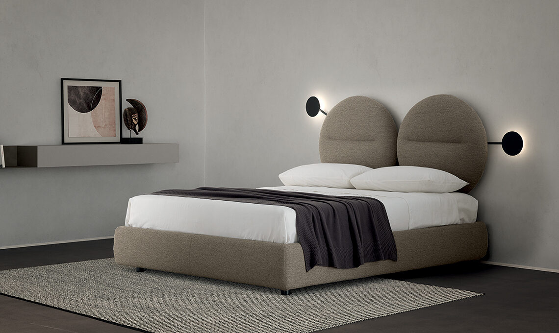 Bishape (Design Monica Graffeo) ha giroletto e testiera separati tra loro e quest'ultima si scompone in due forme da abbinare a piacere. Ogni combinazione definisce la personalità del letto e ne ridisegna la linea sia nella versione matrimoniale sia nella versione singola e grazie ai rivestimenti e al tipo di giroletto si aggiungono ulteriori gradi di personalizzazione.