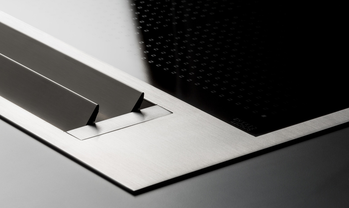 L'eccellenza del design sta anche nella sua facilità di installazione: una cornice di acciaio inox avvolge il piano cottura e il sistema di aspirazione e permette di non avere problemi di adattabilità al piano di lavoro.