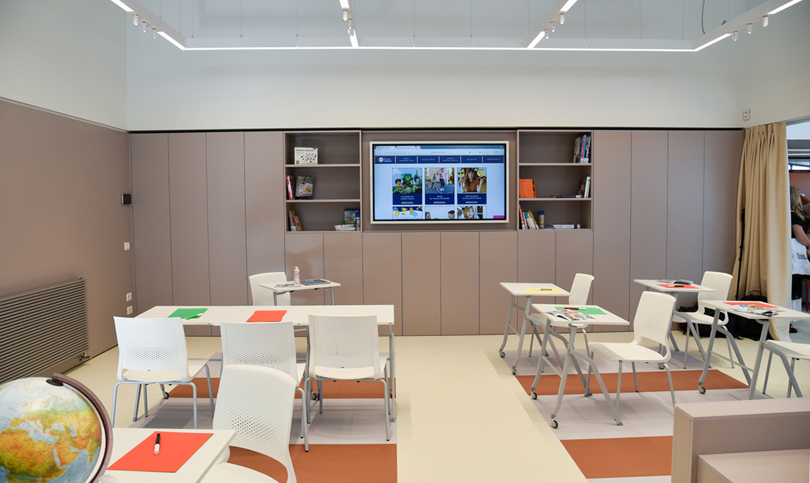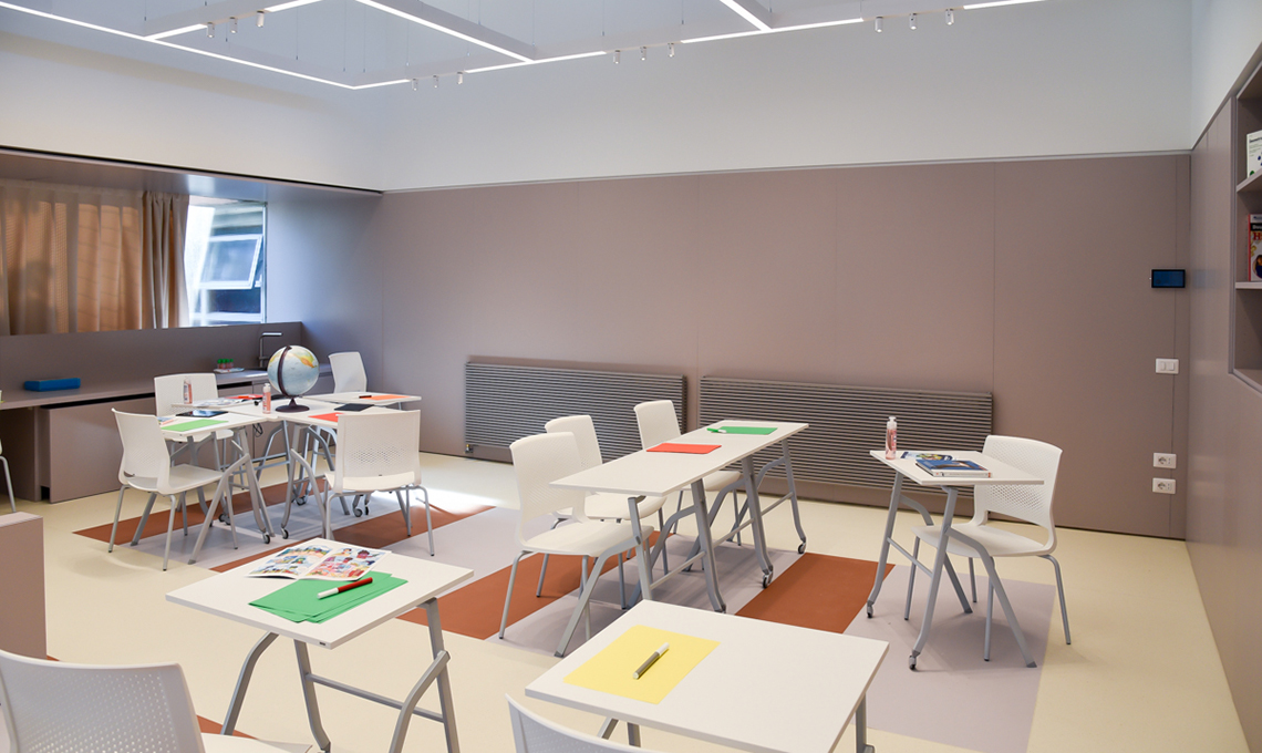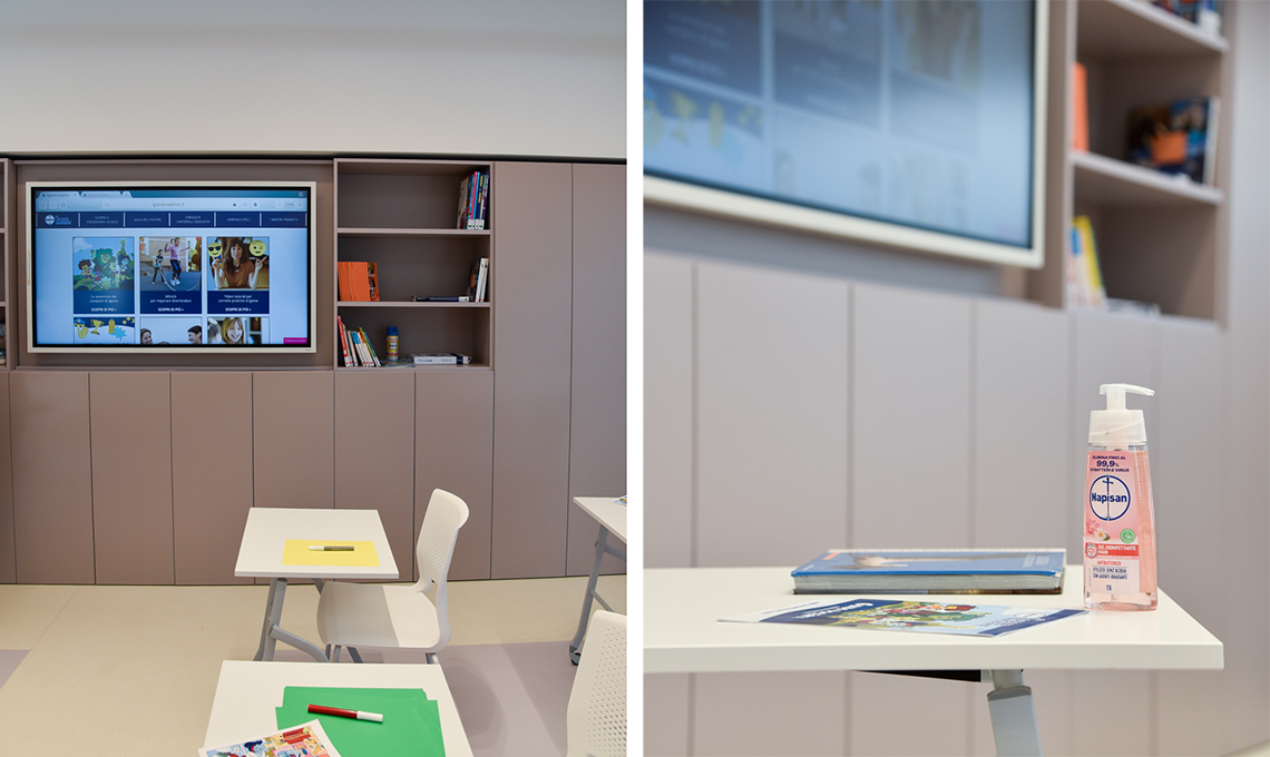 La Scuola Primaria Collodi dell'Istituto Barozzi Beltrami di Rozzano (MI) dove è ospitato il primo prototipo dell'Aula del Futuro progettata da Stefano Boeri Interiors nell'ambito del progetto 'Igiene Insieme' di Napisan.