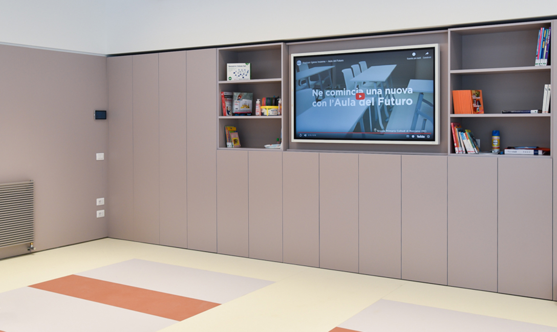 Così è nata l'idea di pensare un'Aula del Futuro che potesse garantire e tutelare i diritti allo studio in un ambiente sicuro e protetto, e grazie a un concorso realizzarla e donarla a una scuola. Tra i tantissimi progetti ricevuti, la vincitrice è stata la Scuola Primaria Collodi dell'Istituto Barozzi Beltrami di Rozzano (MI).