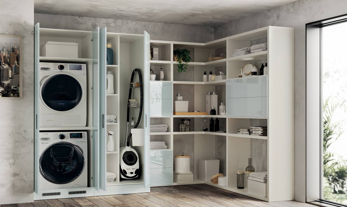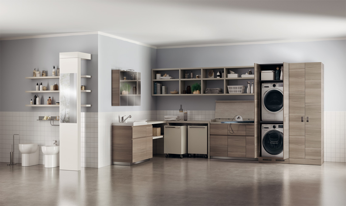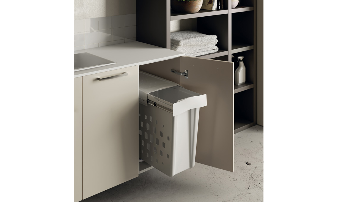 Un sistema che nasce con lo scopo di “nascondere per organizzare” e assicurare una pulizia stilistica assoluta attraverso soluzioni modulari che si avvalgono di armadi contenitivi e carrelli estraibili estraibili, al fine di ottimizzare lo spazio a disposizione, garantendo massima comodità e vivibilità della zona lavanderia o del bagno.