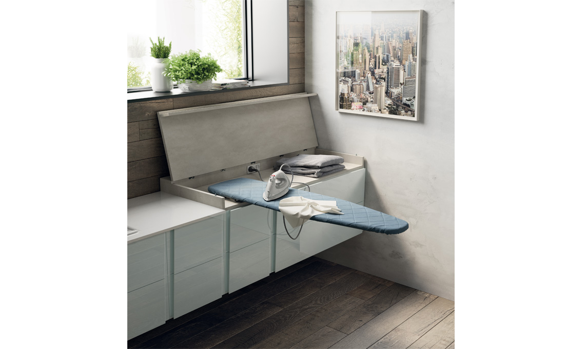 Cosa nascondere? Tutti gli elementi che definiscono l’ambiente lavanderia e che vengono sapientemente ridisegnati e magistralmente combinati da Scavolini dando vita a soluzioni arredative intelligenti, come l’asse da stiro che diviene estraibile dallo spessore del piano, così come i pensili dotati di stendipanni ed armadi ripostigli ideali per riordinare le attrezzature.