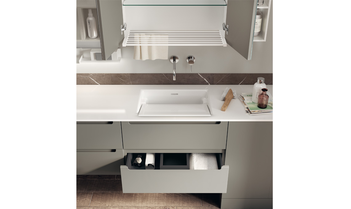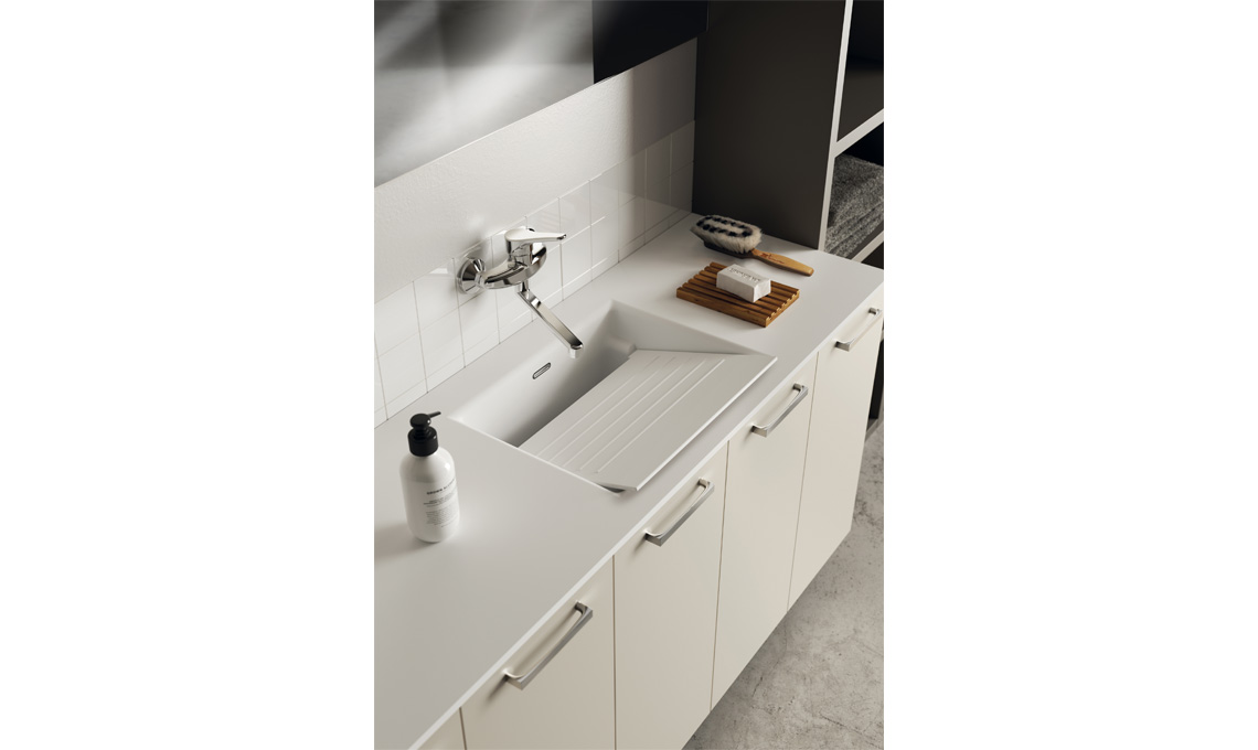 Basta aspirapolvere e stendipanni aperti tra il bagno e la camera da letto! Scavolini Bagno allarga metaforicamente il bagno allo spazio Lavanderia e crea Laundry Space, un sistema completo e funzionale ideato da Ildefonso Colombo che integra gli elementi tipici della lavanderia nella modularità, che da sempre contraddistingue tutte le collezioni Scavolini (Rivo, Aquo, Lagu, Idro, Qi, Magnifica).