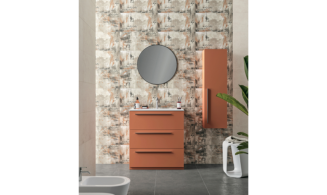 La piastrella in grés, nella versione più attuale, esce dai suoi confini e si ripropone in versione ‘wall paper’.