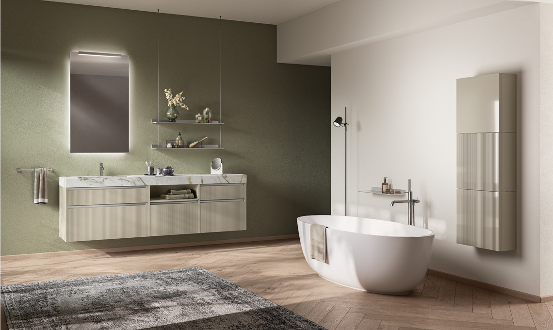Ciò che distingue veramente Miko è la sua ampia gamma di finiture, tonalità e scelte di materiali, consentendo la massima personalizzazione di ogni spazio per la cura di sé, soddisfacendo anche i gusti più esigenti. In particolare, tre nuove sfumature dall'effetto perlato (Cuvée, Pas Dosé e Perlage) ampliano la palette di laccati lucidi e opachi e sono disponibili anche in una versione dogata verticale distintiva.