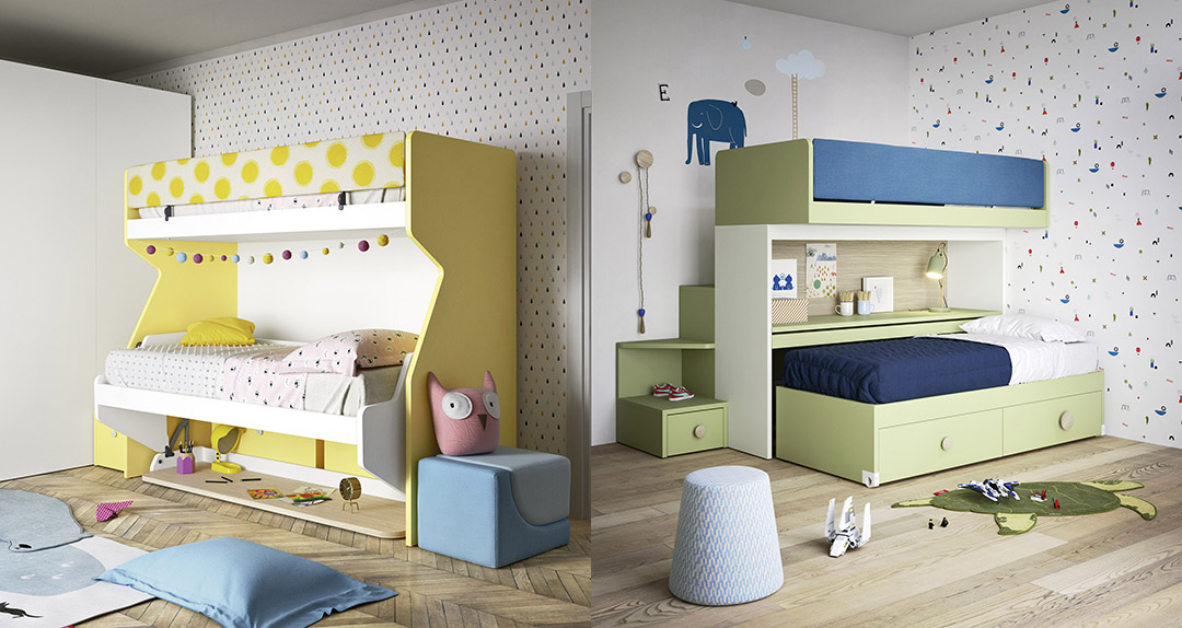 Senza trascurare la più semplice delle proposte, i due letti uno sopra l'altro, Nidi ridefinisce il contesto, arricchendolo di tutto ciò che rende una cameretta comoda e pratica, oltre che bella. Sì, perché la cameretta è il mondo in cui i bimbi vivono e crescono, ed è essenziale che ogni spazio sia organizzato nel modo giusto per dare corpo a tutti i bisogni e le passioni di chi la abita.