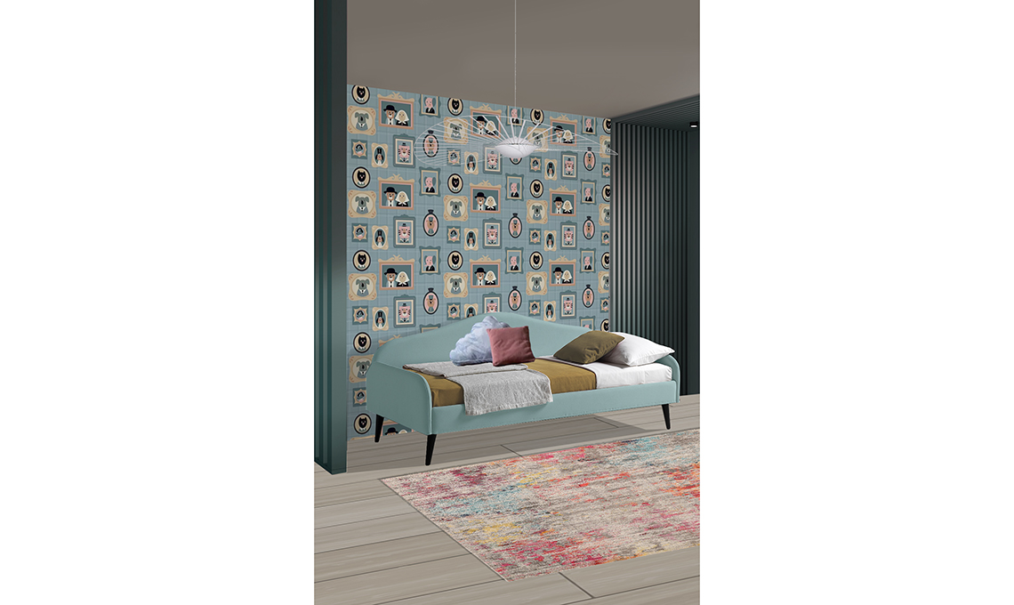 La prima ha uno stile minimalista ispirato al design nordico, con toni blu avio e arancio. La seconda propone una carta da parati verde salvia con animali del bosco e Bloomy color vinaccia, ideale per una camera dall'atmosfera romantica. La terza moodboard in stile eclettico, mette in risalto il letto azzurro acquamarina grazie ai complementi e ad un'originale carta da parati. Infine, Bloomy nella tonalità cenere crea il giusto contrasto con la carta da parati e il tessile della cameretta girly pop. Quale sarà la preferita di Flavia?
