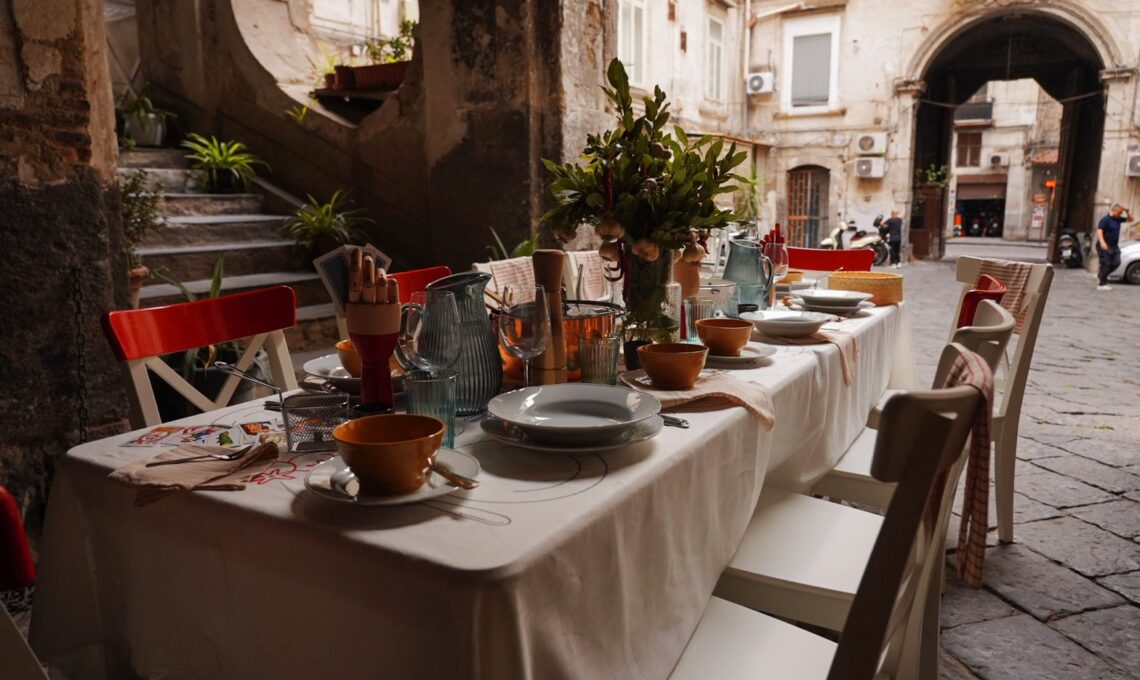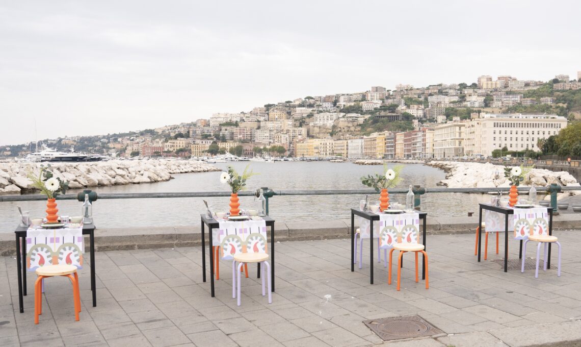 A Milano la designer Elena Salmistraro* ha immaginato un tavolo come un vero melting pot: forme e colori che si intrecciano, forchette accanto a bacchette, un design che racconta la città crocevia di culture. A Roma la stessa designer ha scelto un approccio più solenne, con una tavola che invita a rallentare, a condividere tempo e tradizione, ispirata ai colori e alle forme del patrimonio architettonico. A Napoli, invece, la convivialità ha preso la forma vivace dello street food: cinque tavole diffuse nei quartieri, profumate di caffè e peperoncino, colorate e popolari come la città stessa.