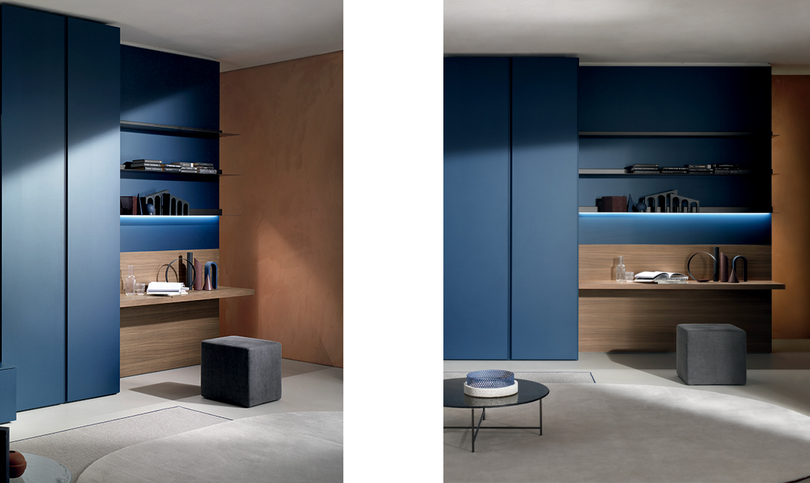 Il design di Zalf sa essere furbo e versatile, e prestarsi a innumerevoli necessità: un armadio può nascondere un piccolo scrittoio, un pratico ripiano sospeso può armonizzarsi in una parete attrezzata, un pannello divisore può isolare il computer dal resto del tavolo da pranzo, lo schienale di un divano può fare da appoggio alla scrivania, magari schermata da una libreria divisoria.