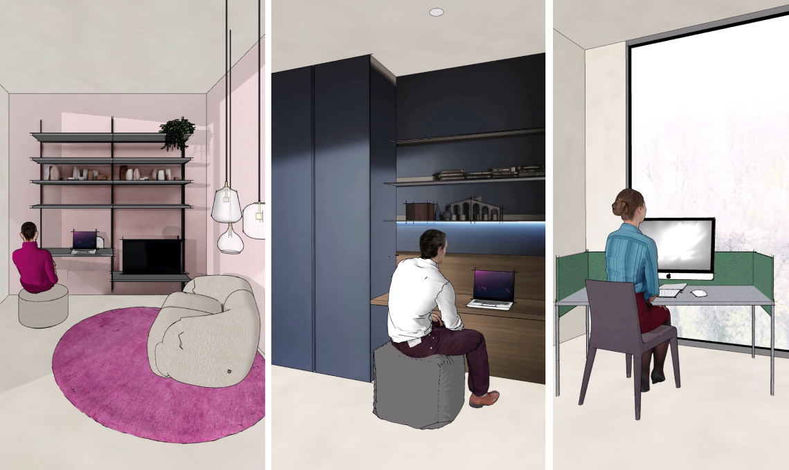 Agnese ha un living davvero mini, Lorenzo vorrebbe sfruttare la zona ingresso aperta sul soggiorno, Federica vive in un loft con grandi vetrate e poche pareti d’appoggio… Tutti e tre lavorano spesso da casa, non hanno un vero e proprio ambiente studio e vorrebbero realizzare un piccolo home office evitando la zona notte.