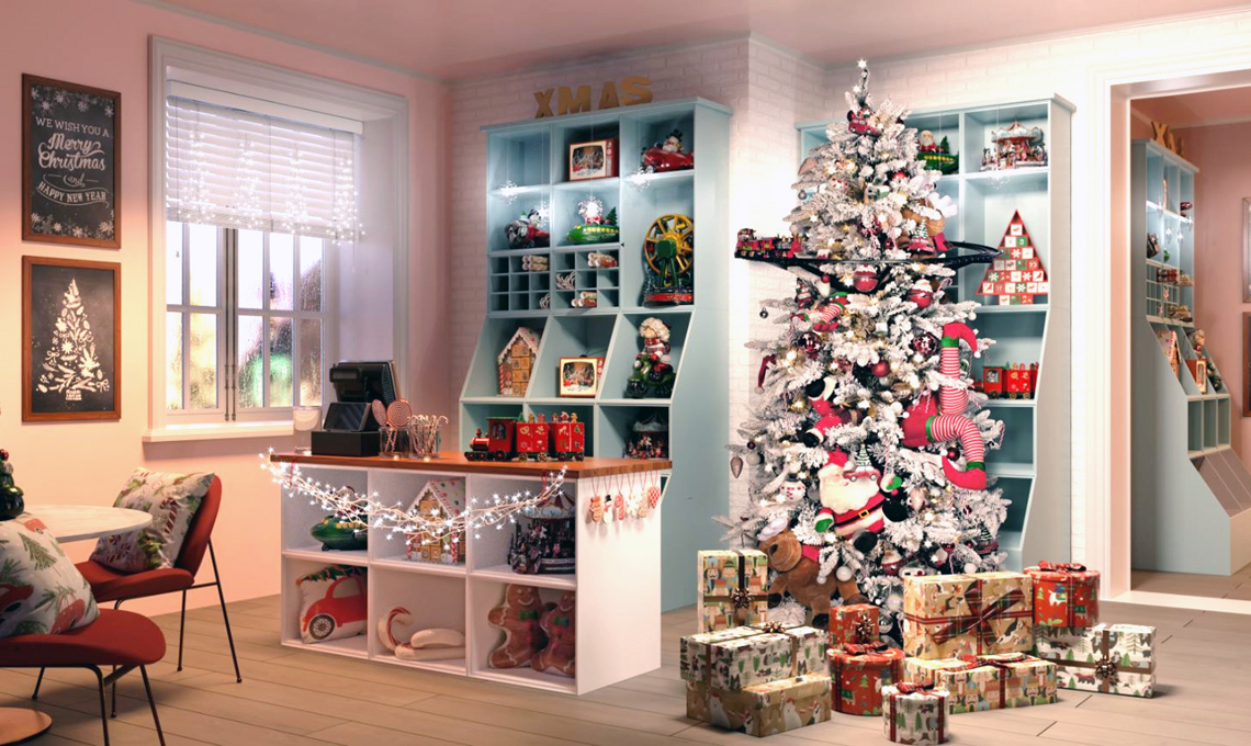 STILE MAGIC - Giochi e carillon, la musica e gli addobbi, il tutto giocato sui tradizionali toni del bianco e del rosso. Un’atmosfera che fa tornare bambini, con la voglia di festeggiare la notte più magica dell’anno in una nostalgica bottega ispirata agli Anni ’50.