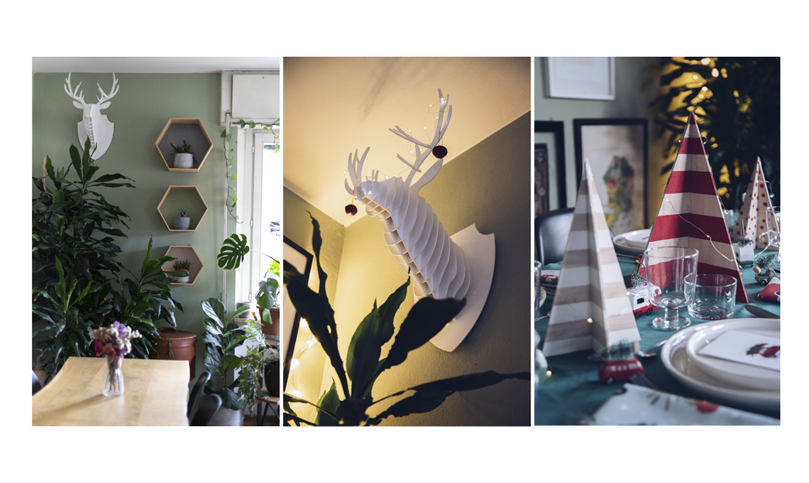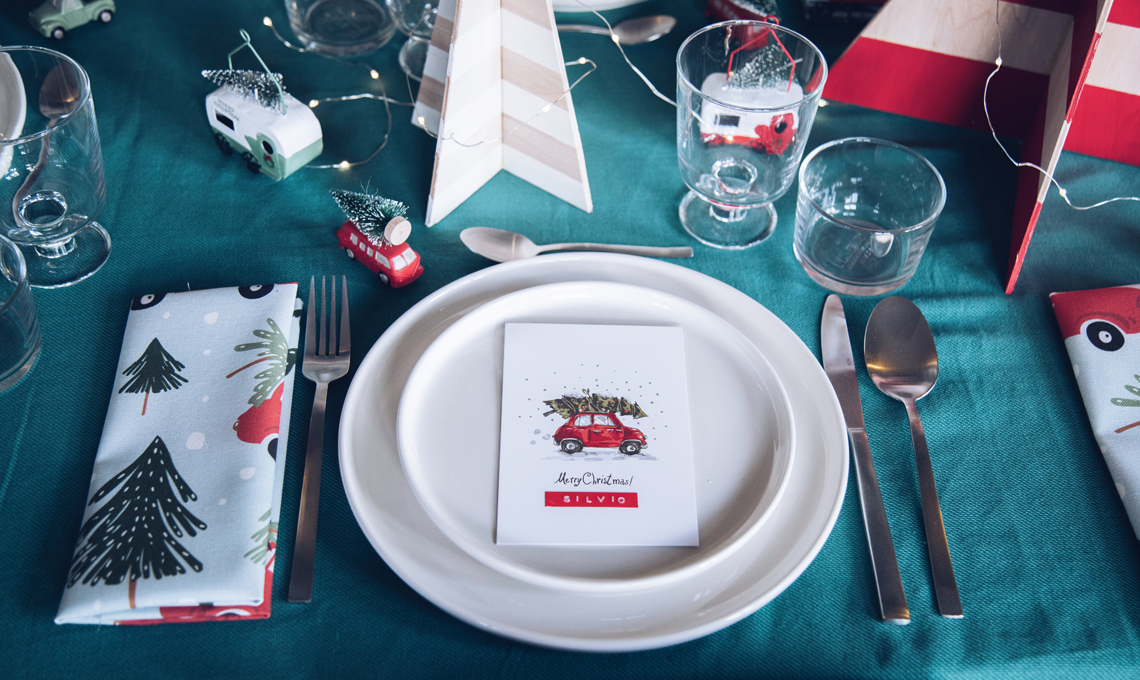 Sei alla ricerca di qualche spunto per decorare la propria casa questo Natale? Ecco un paio di idee per creare una tavola colorata e giocosa e aggiungere un tocco di magia in più. Mi sono fatta ispirare dallo stile Magic di Leroy Merlin: rosso e bianco come colori dominanti, campanellini, lucine e piccoli dettagli “on the road” per un Natale leggermente diverso dal solito. Per la tavola ho deciso di creare degli alberelli in legno usando i ritagli che si possono trovare nella zona taglio dei punti vendita Leroy Merlin. Dalle tavolette ho poi ricavato dei triangoli che ho decorato ed incollato dando vita ad una decorazione dai toni minimal ma che potesse dare personalità alla tavola. Ho poi aggiunto dei piccoli furgoncini che trasportano mini alberi di Natale accanto ad ogni posto, tema poi richiamato anche dalle cartoline natalizie usate come segnaposto: ho aggiunto sul fronte il nome del commensale e sul retro le ho personalizzate con un messaggio di auguri scritto a mano. La casa invece è stata illuminata con lucine in grado di sottolineare degli angoli particolari: le nicchie sul muro con la scritta XMAS, la renna in carta appesa alla parete “vestita” a festa, l’ingresso arricchito con una cassetta delle lettere decisamente natalizia e una composizione fatta con rami e addobbi per l’albero di Natale appesa sul soffitto dell’ingresso in modo da far entrare subito in clima natalizio tutte le persone che entrano in casa. Insomma, tante piccole idee in grado di vestire casa mia di un Natale decisamente “Magic”!