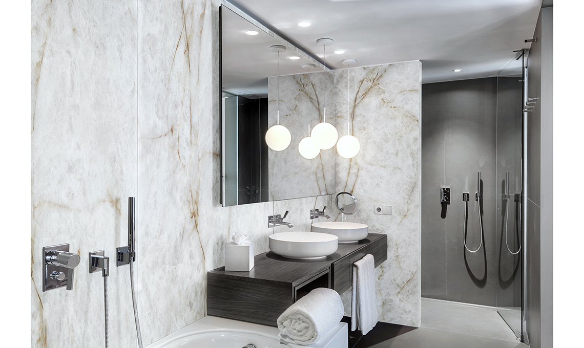 Abu Dhabi White è il modello ispirato alla Gran Moschea dello Sceicco Zayed della capitale degli Emirati Arabi. Una rievocazione dei paesaggi soleggiati della costa araba data dalle delicate venature dorate creano un effetto discreto e delicato.