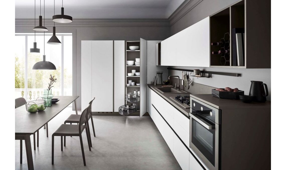 Le proposte Ar-Tre includono portaposate, elementi estraibili anche per angoli difficili, sistemi per la raccolta differenziata, portabottiglie, portapiatti e ripiani magnetici removibili. Tutti accessori pensati per migliorare l’ergonomia e rendere la cucina più comoda da usare ogni giorno. Anche l’illuminazione gioca un ruolo chiave: luci LED sotto pensili o all’interno di colonne rendono visibile ogni zona di lavoro, migliorando sia la funzionalità che l’estetica.