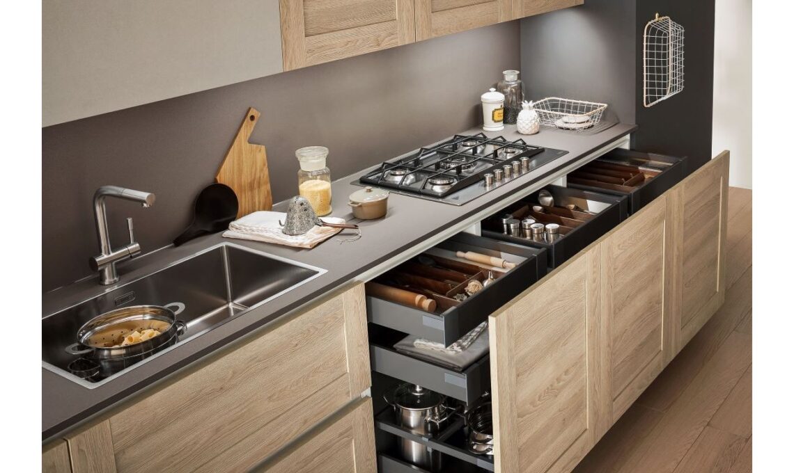 Una cucina funzionale non può prescindere da una dotazione di accessori intelligenti, piccoli dettagli che fanno la differenza. Cassetti organizzati con divisori regolabili, cestoni attrezzati, sottopensili modulari e ripiani estraibili sono fondamentali per sfruttare ogni centimetro disponibile. Gli accessori trasformano gli interni dei mobili in spazi personalizzati dove ogni utensile ha il suo posto.