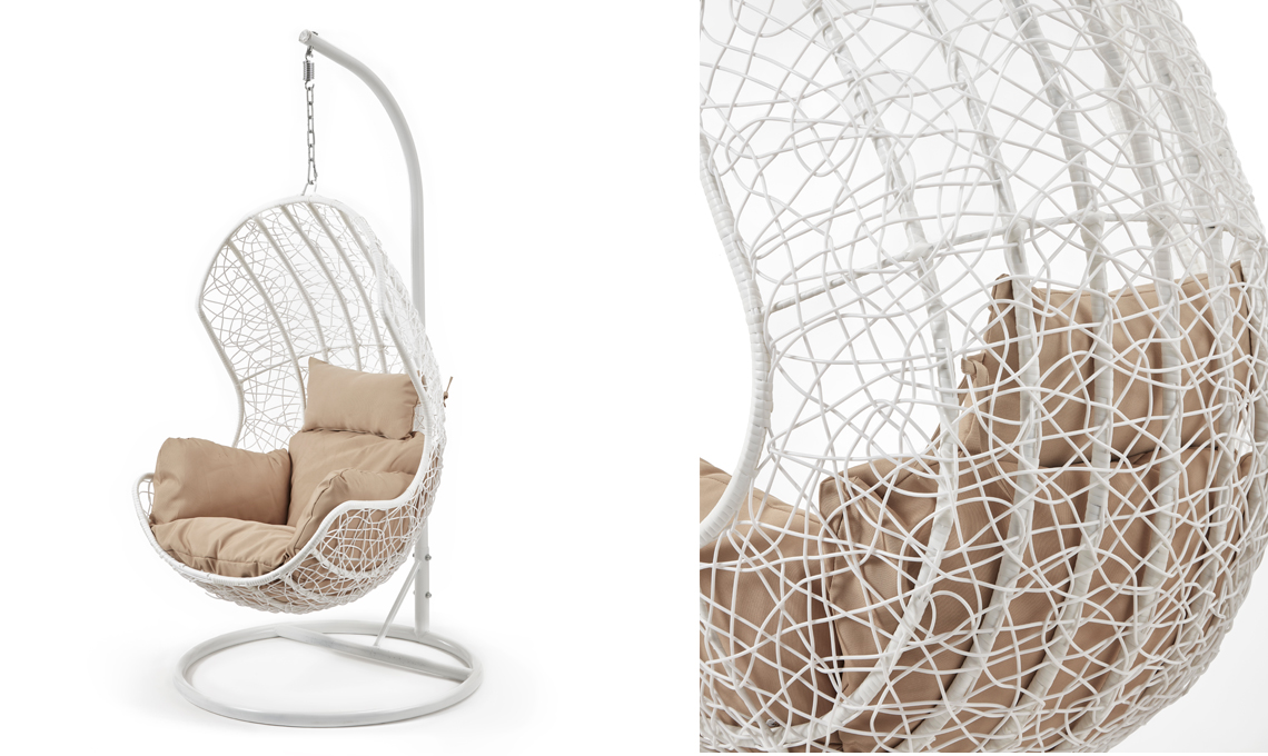 Le poltrone sospese cocoon (come Thomas, Mary o Alice) sono comode, avvolgenti e scenografiche, perfette per creare il tuo angolo relax.