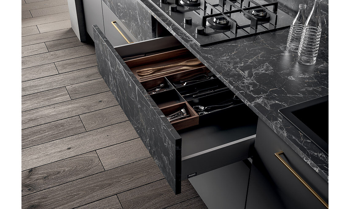 Arredo3 soddisfa queste esigenze con le sue cucine che dialogano con le proposte per il living e gli elementi trasversali realizzati su misura, con la qualità del Made in Italy e attraverso pratiche sostenibili.