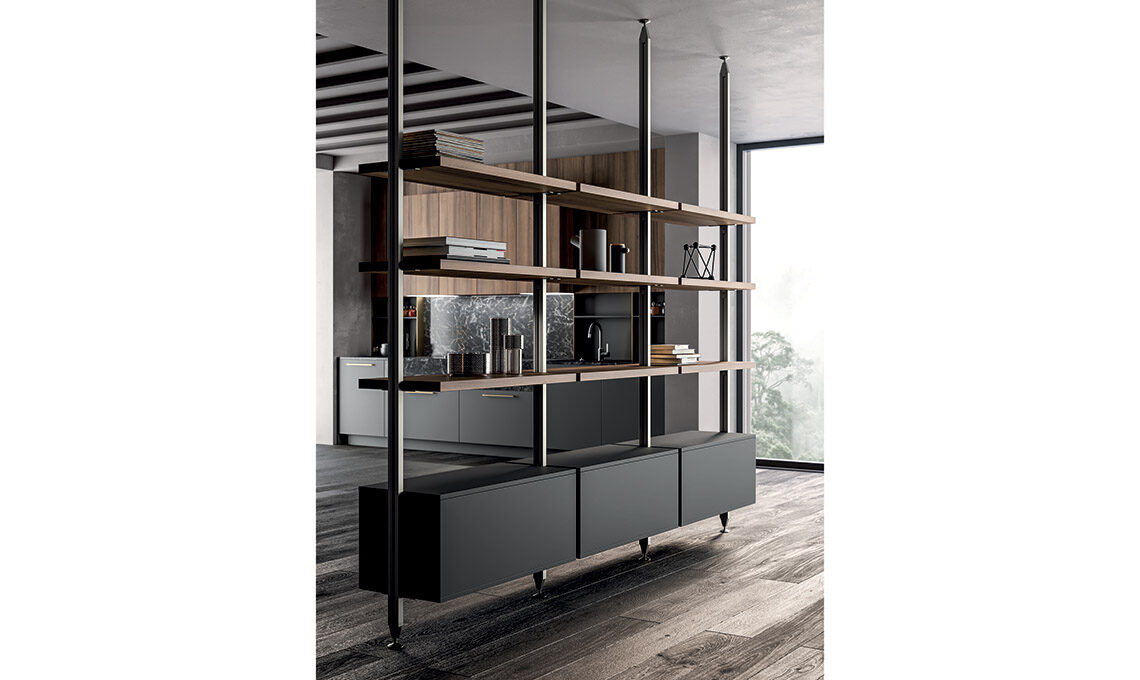 La libreria è uno degli elementi più poliedrici e versatili dell’arredamento e per questo risulta ideale negli ambienti polifunzionali come gli open space: Arredo3 consente di scegliere tra differenti alternative strutturali, ciascuna declinabile tra molte combinazioni possibili e numerose finiture già disponibili per cucine e living. Collocata a parete, minimal ed essenziale è un perfetto complemento d’arredo, mentre fissata al soffitto, con linee decise e materiali ricercati può diventare la vera protagonista dell’ambiente.