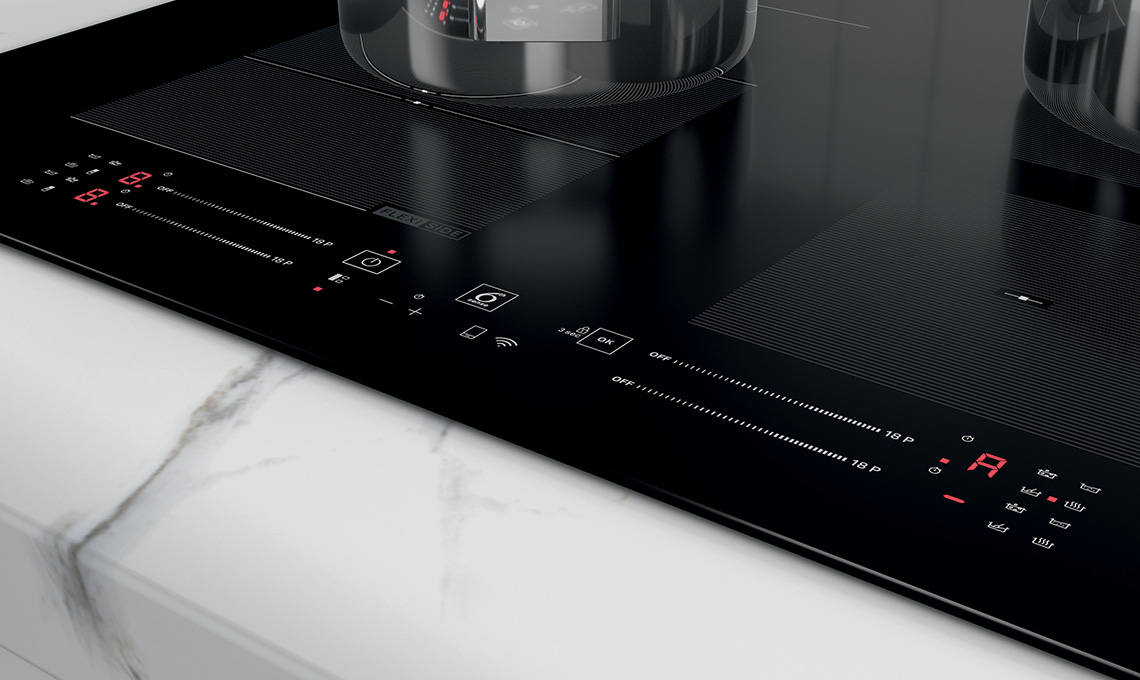 Grazie alla ConnexionZione puoi unire due diverse zone di cottura, facilitando la cottura uniforme dei piatti che richiedono pentole e tegami di grandi dimensioni. La funzione FlexiCook permette di combinare due zone per crearne una sola e impostare per entrambe lo stesso livello di potenza, unendo e separando le zone di cottura a seconda delle esigenze.