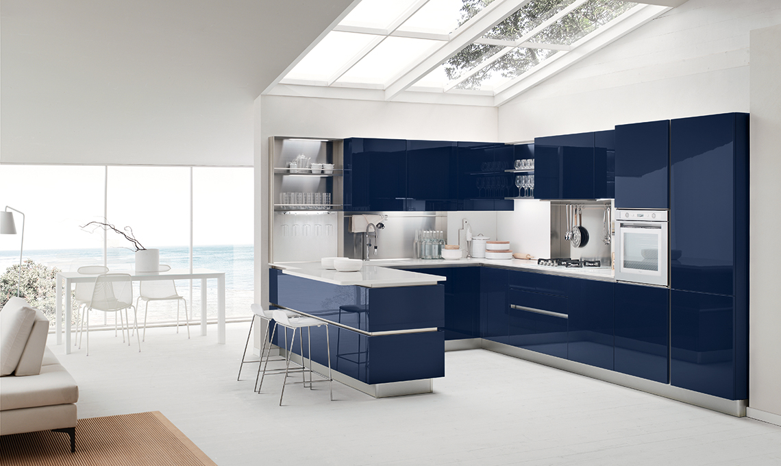 Sei una persona calma e riflessiva, ami l'immensità del mare e del cielo? Per te c'è Blue, una gamma di ben tre nuance tra cui scegliere – Ottanio, Blu Navy e Blu Topazio – che renderà la tua cucina un luogo accogliente e rilassante, capace di regalare serenità e armonia a tutta la famiglia. Arricchito con accessori monocromatici, magari total white, sarà il top dell'eleganza.
