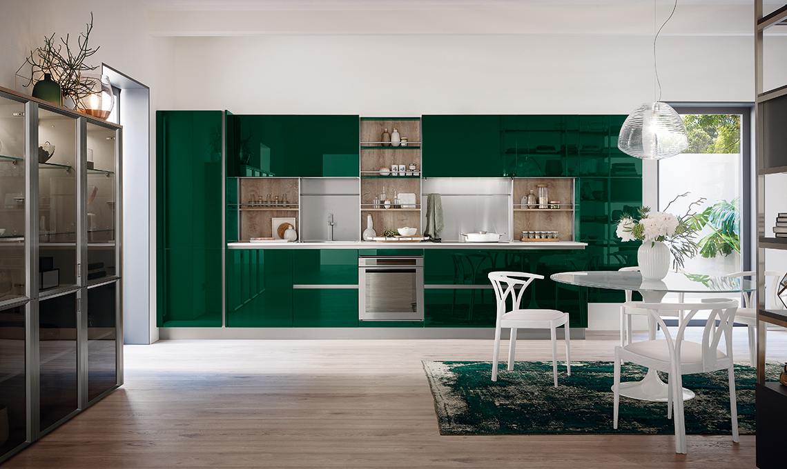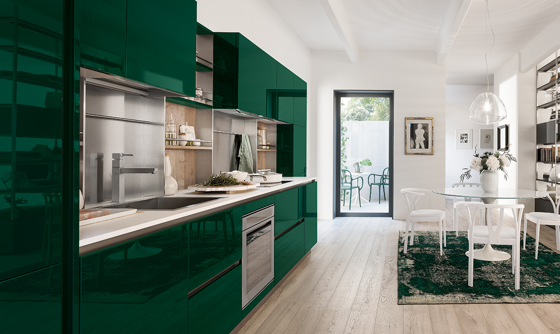 Ti piacerebbe iniziare la giornata avvolta dai profumi e dai suoni della natura? Il tuo colore è il Green, simbolo di forza, equilibrio e perseveranza. Il vibrante Green di Veneta Cucine esalta la luminosità della stanza e caratterizza l'ambiente in modo deciso. Abbinato al legno e all'acciaio crea un effetto raffinato e personalissimo.