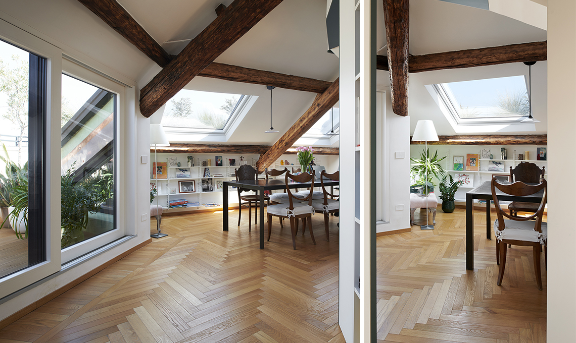 In questa ristrutturazione mi sono fatto guidare dalla luce! Raddoppiare alcuni lucernari installando nuove finestre per tetti è stata una scelta sicuramente vincente
