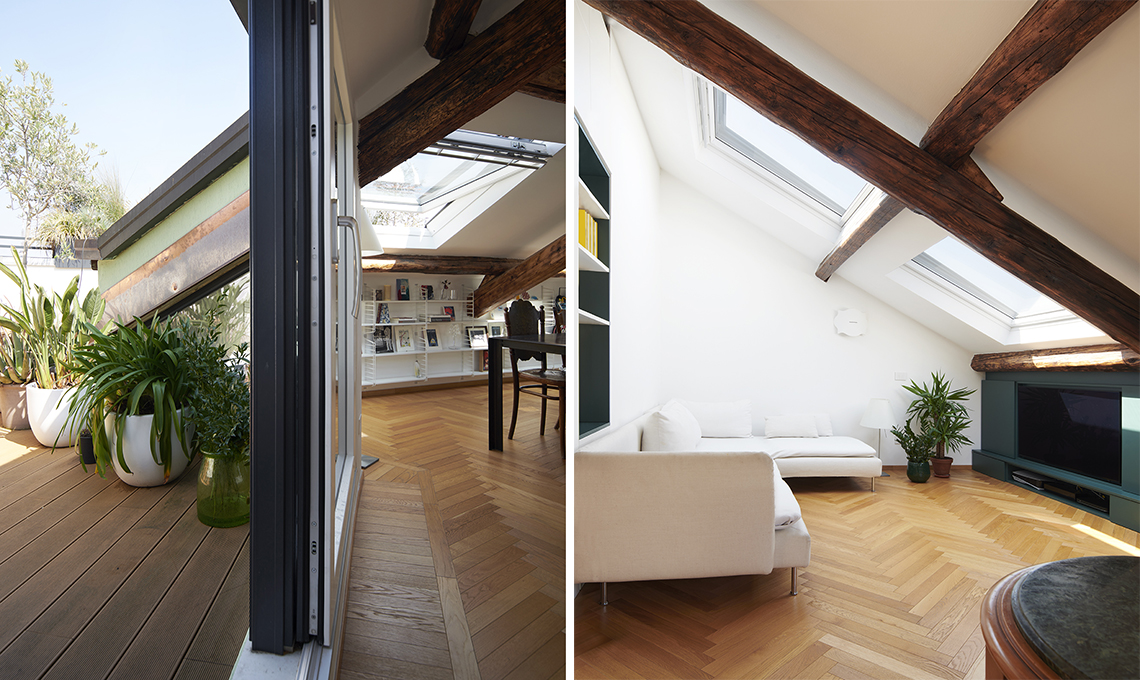 Non è facile capire il potenziale di uno spazio buio diviso in tante stanzette anguste dalle pareti scure: Aurora e Matteo avevano quasi perso le speranze di trovare la grande mansarda dei sogni in cui vivere con i loro bambini, ma si sono affidati all'intuito dell'architetto Rodolfo Sormani che ha saputo valorizzare una vecchia soffitta condominiale trasformandola in una casa davvero a cielo aperto.