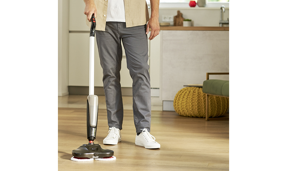 Il nuovo lavapavimenti elettrico Vileda Looper è dotato di un serbatoio integrato, di un erogatore spray e di due panni rotanti in microfibra, che garantiscono la rimozione di oltre il 99% dei batteri e dei virus anche solo con acqua*.