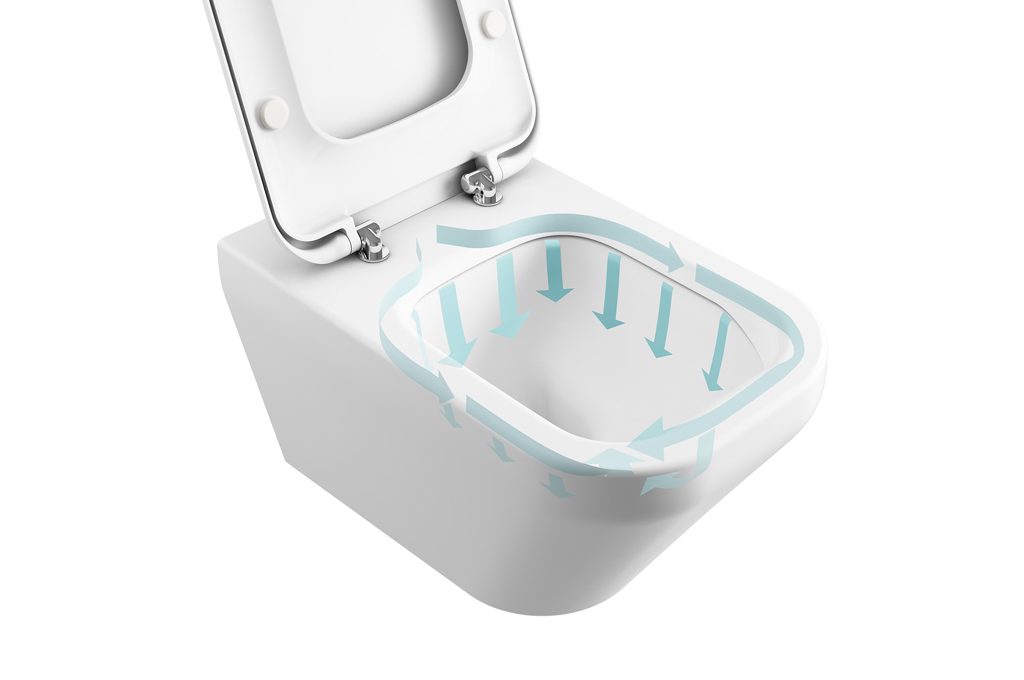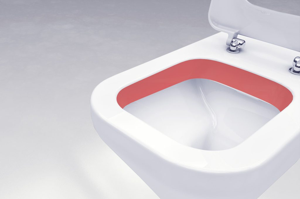 La svolta è rappresentata dall’eliminazione della brida – il sormonto del wc – posizionato solitamente vicino al bordo superiore del vaso, da cui fuoriesce l’acqua di scarico. La forma classica impedisce infatti all’acqua di raggiungere circa il 20% della superficie del sanitario, rendendo più difficoltosa una corretta pulizia. Il sistema AquaBlade®, posizionato vicino al bordo del bacino, ne amplia la superficie e permette al flusso d’acqua rilasciato con lo scarico di raggiungere ogni punto del vaso.